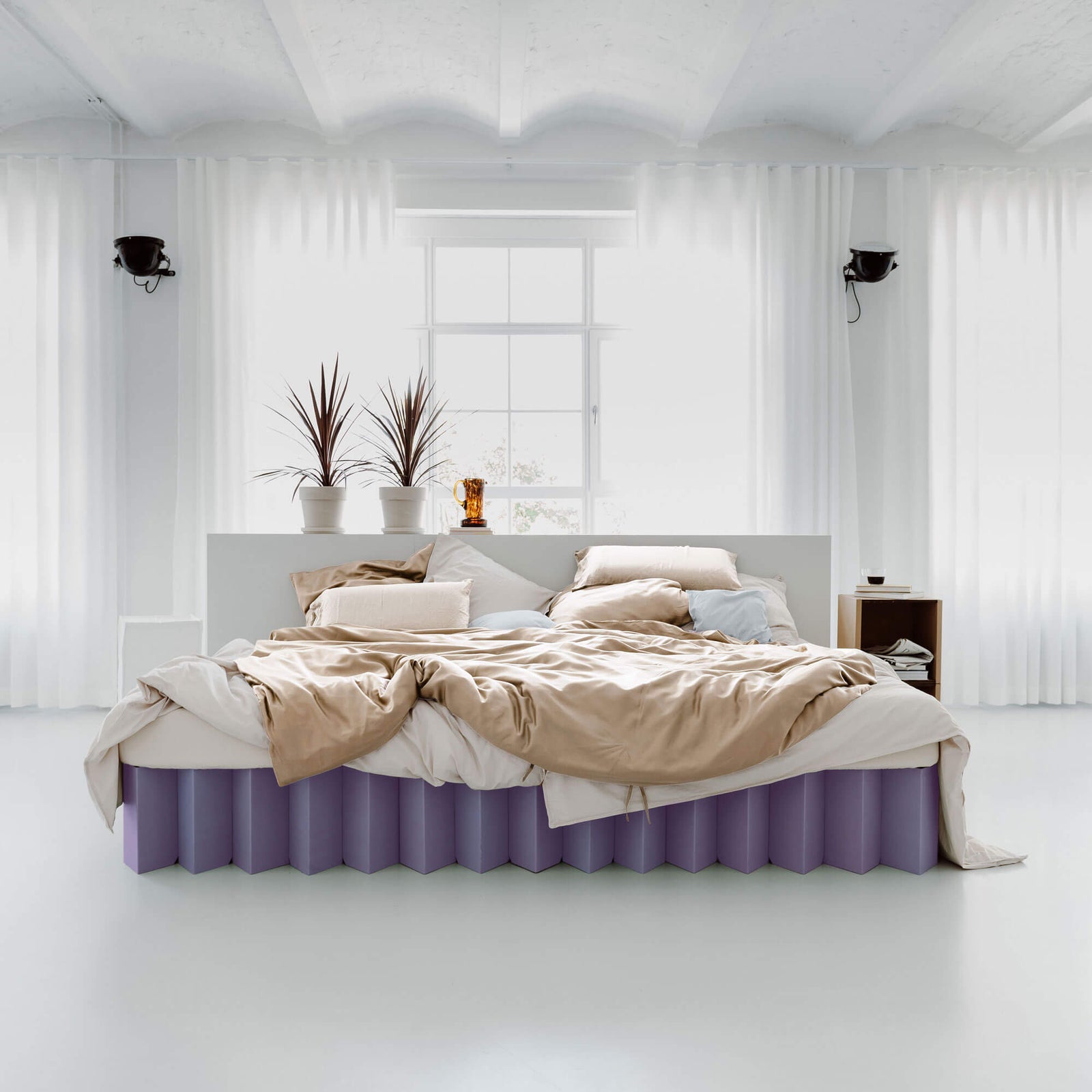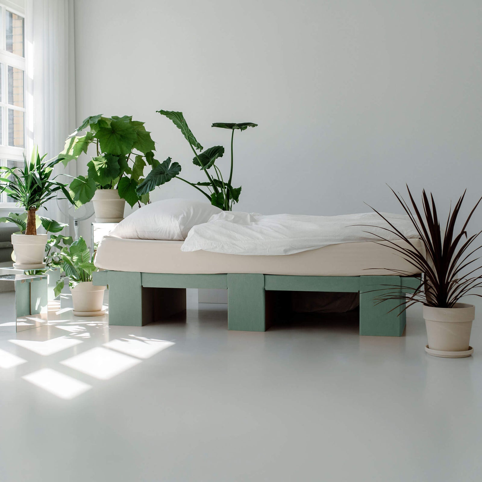 Le matériau en carton ondulé est généralement très respirant. En raison de la construction en losanges et des fentes sur les côtés, l'air est également expulsé vers l'extérieur lors des déplacements sur le lit Lit 2.0. Pour garantir cela, il doit y avoir un espace d'environ la largeur d'une main entre les murs et les longs côtés de votre lit. Cela empêche la formation éventuelle de moisissure.