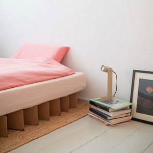 Fabriqué en carton ondulé haute résistance, le Lit 2.0 LOW est non seulement stable et durable, mais aussi écologique. Composé de 54 à 80 % de matériaux recyclés, il est entièrement recyclable. L'utilisation de colles à base d'amidon de maïs le rend particulièrement respectueux de l’environnement. En fin de vie, il peut être simplement jeté dans la poubelle de recyclage papier.