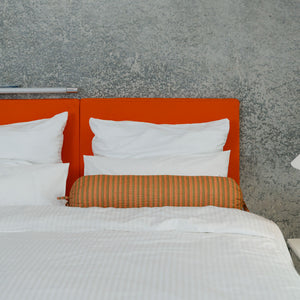La tête de lit est fabriquée à partir de latex naturel à 100 % provenant de cultures certifiées FSC. Pour la housse, nous avons choisi du PET recyclé car c'est un matériau durable et très résistant.