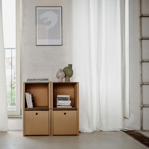 Les modules sont actuellement disponibles uniquement en couleur carton naturel. Les inserts sont disponibles dans les couleurs naturel, blanc, noir et sauge.