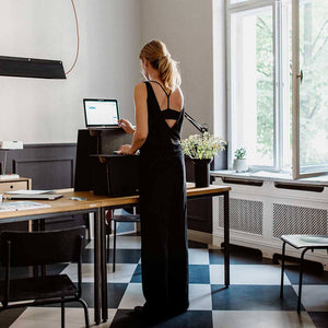 Rester assis tout le temps a un impact négatif non seulement sur notre santé, mais aussi sur notre productivité. Cependant, de nombreux meubles de bureau, et en particulier le mobilier à domicile, ne sont pas conçus pour travailler debout. C'est pourquoi nous avons développé l'extension de bureau MonKey Desk. Le MonKey Desk transforme en quelques secondes n'importe quel bureau en un bureau debout et se compose d'une extension pour moniteur et d'une extension séparée pour clavier. Il se démonte aussi rapidement qu'il s'installe. Une fois replié, le MonKey Desk peut être rangé dans la boîte de rangement à côté du bureau pour gagner de la place.