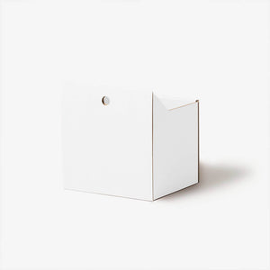 Le tiroir est fabriqué en carton ondulé de haute qualité, contenant 54 à 80 % de matières recyclées. Cela le rend à la fois léger et stable. Les couches de papier sont collées avec une colle végétalienne d'amidon de maïs, puis finies avec des peintures à base d'eau et sans solvant pour les versions blanche, noire et sauge. Le résultat est un produit respectueux de l'environnement, écologique et durable qui peut être entièrement recyclé dans la corbeille à papier.