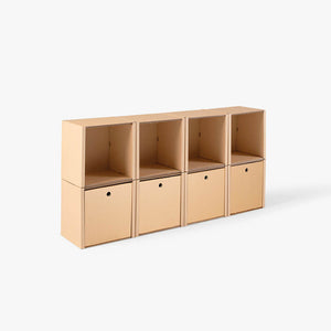 Les modules sont actuellement disponibles uniquement en couleur carton naturel. Les inserts sont disponibles dans les couleurs naturel, blanc, noir et sauge.