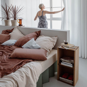Et ça tient ? Bien sûr ! Pour garantir que notre mobilier est stable et durable, nous utilisons du carton ondulé AVANA - un carton ondulé de qualité particulièrement élevée. Nos modules d'étagères peuvent ainsi supporter jusqu'à 10 kg. Tu peux également trouver des informations détaillées à ce sujet dans les instructions ou dans notre FAQ.