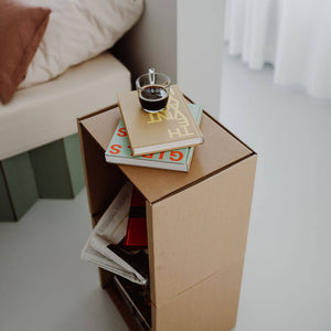 Les modules sont actuellement disponibles uniquement en couleur carton naturel. Les inserts sont disponibles dans les couleurs naturel, blanc, noir et sauge.
