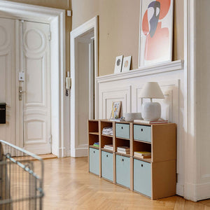 Enfin, apporte de l'ordre au chaos ! Notre étagère carrée composée de neuf modules offre beaucoup d'espace de stockage et s'intègre parfaitement en tant qu'étagère de bureau ainsi que chez toi. Tiroirs et portes t'aident à ranger de petits objets et à les protéger de la poussière. Pour les amateurs de lecture, la version ouverte constitue une bonne bibliothèque extensible selon tes besoins. Choisis l'un de nos modèles standard préconfigurés ou créez facilement ton propre étagère individuelle ici.