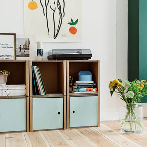 La porte peut être facilement retirée du module d'étagère. Ainsi, tu peux en changer la position de manière flexible à tout moment.
