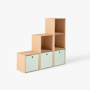 Les modules sont actuellement disponibles uniquement en couleur carton naturel. Les inserts sont disponibles dans les couleurs naturel, blanc, noir et sauge.
